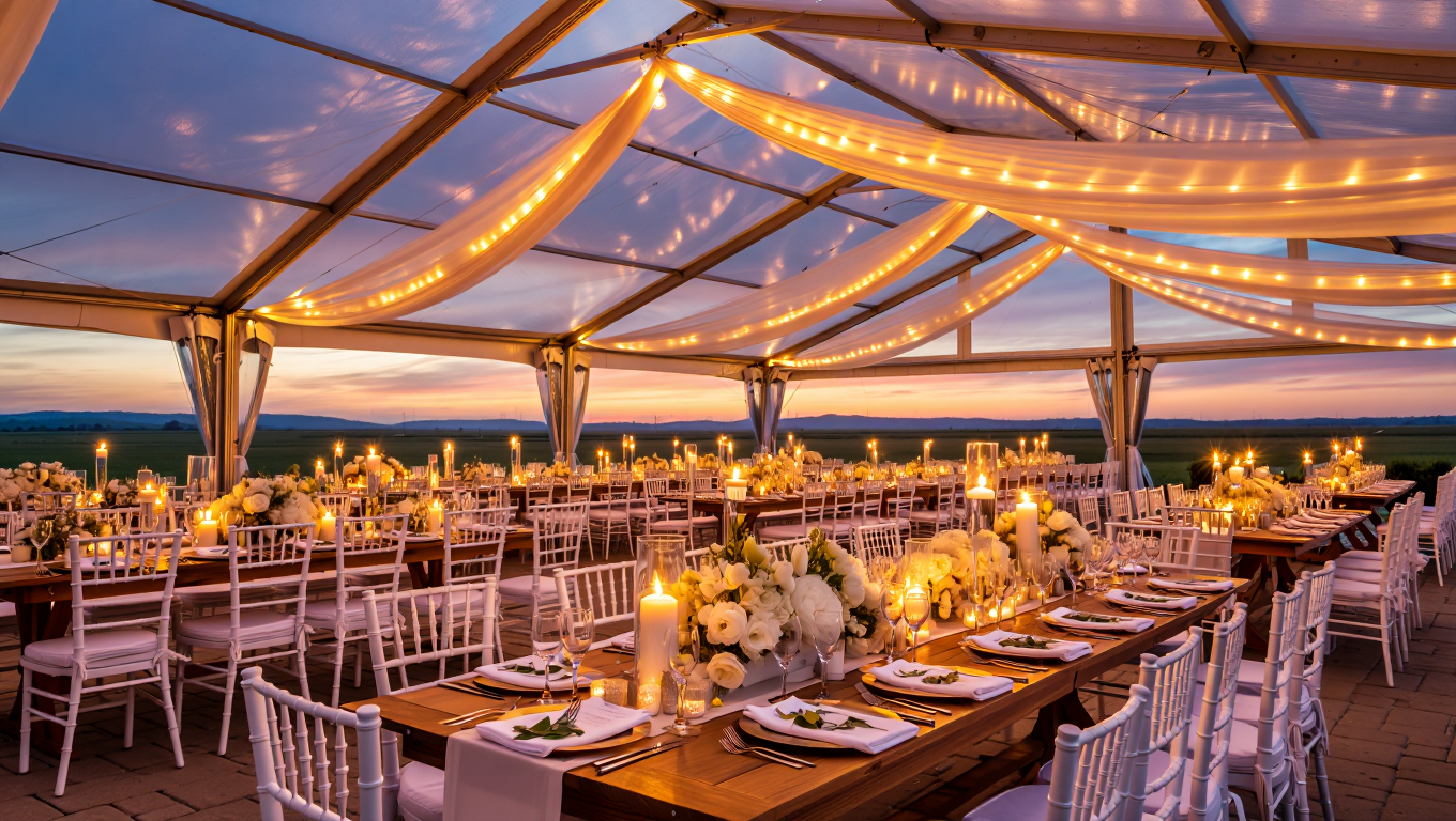 A wedding tent isn’t just a safety net for rain. It becomes the room where your ceremony happens, where dinner is served, where speeches are made, and where the dance floor fills late in the evening.